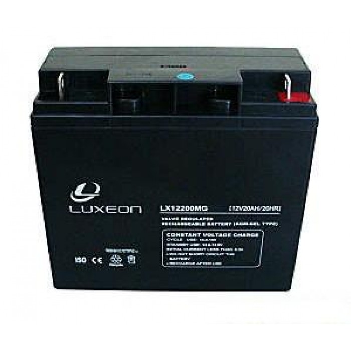 Luxeon LX 12-200MG(12v, 20Ah) – герметичная необслуживаемая аккумуляторная батарея общего назначения. Ресурс батареи расчитан на работу в циклическом режиме в течении пяти лет, либо на 260 циклов полного заряда и разряда. Соответствует требованиям стандартов IEC и JIS. Данная модель батареи выгодно отличается от своих аналогов-конкурентов увеличенной емкостью (большинство АКБ с размерами 180x80x167 имеют емкость 17Ah). Часто используются в резервных источниках бесперебойного питания.