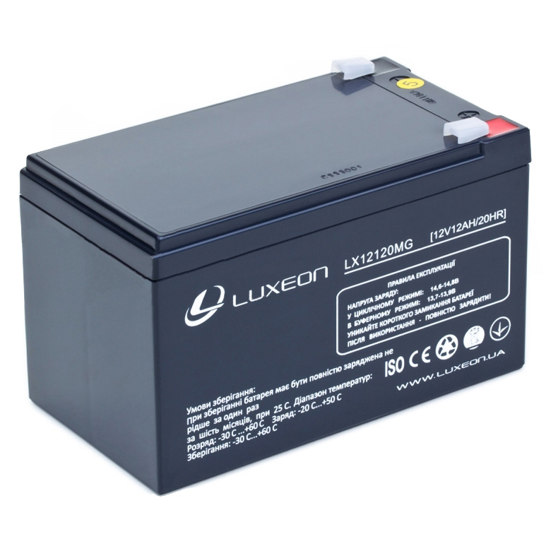 Аккумуляторные батареи LUXEON LX12120MG - свинцово-кислотные, герметичные, необслуживаемые аккумуляторные батареи. Крепление: горизонтальная установка на поверхности. Разряжайте батарею один раз в месяц. После разряда батарею необходимо полностью зарядить.