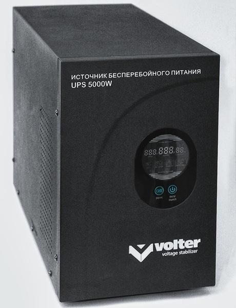 Источник бесперебойного питания UPS - 5000 ТМ Volter предназначено для непрерывного обеспечения электропитанием особо ответственных потребителей в случае пропадания напряжения в электросети. Устройство автоматически подзаряжает аккумуляторную батарею (АКБ) при появлении напряжения в электросети.